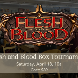 Join us every Saturday at 10:30a for Flesh and Blood Armory. These events will have a $5 entry fee, to be paid in person.