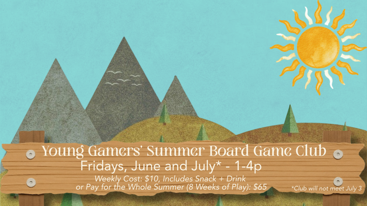 Join us Fridays in June and July, following our weekly Chess Club, for a few hours of game play! We’ll have selected games each week ready to teach and play, but our entire game library will also be available for gamers! Weekly achievements for the games being featured will earn gamers the chance to earn points to redeem at the end of the summer for store credit! Make friends and learn new games (or enjoy old favorites)!